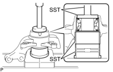 (b) Using SST and a press, remove the hub bearing from the steering knuckle.