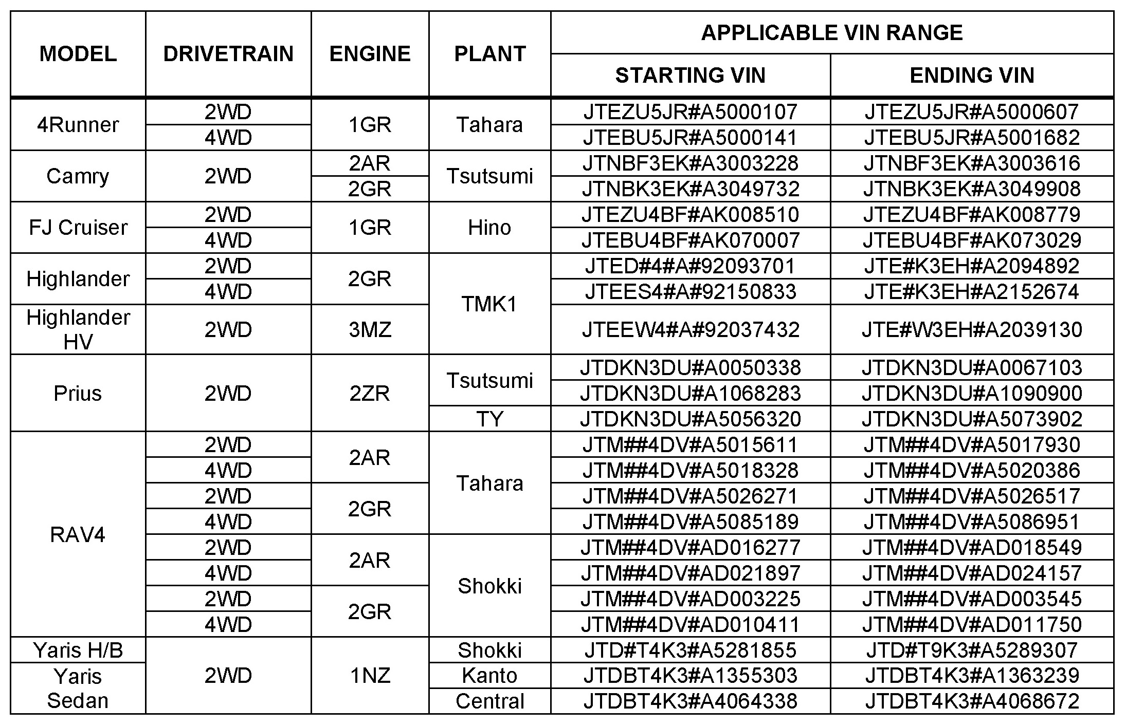 This TSB applies to vehicles produced WITHIN the applicable VIN ranges shown.