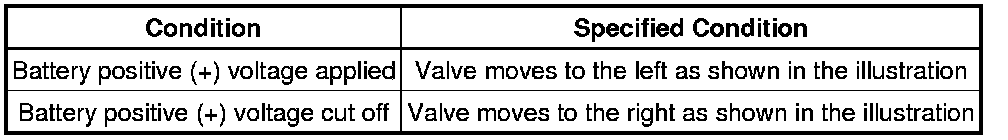 (1) Connect the positive (+) battery lead to terminal 1 and the negative (-) lead to terminal 2, and check the movement of the valve.