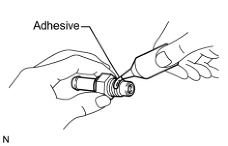 (1) Apply adhesive to the end 2 or 3 threads of the bolt.