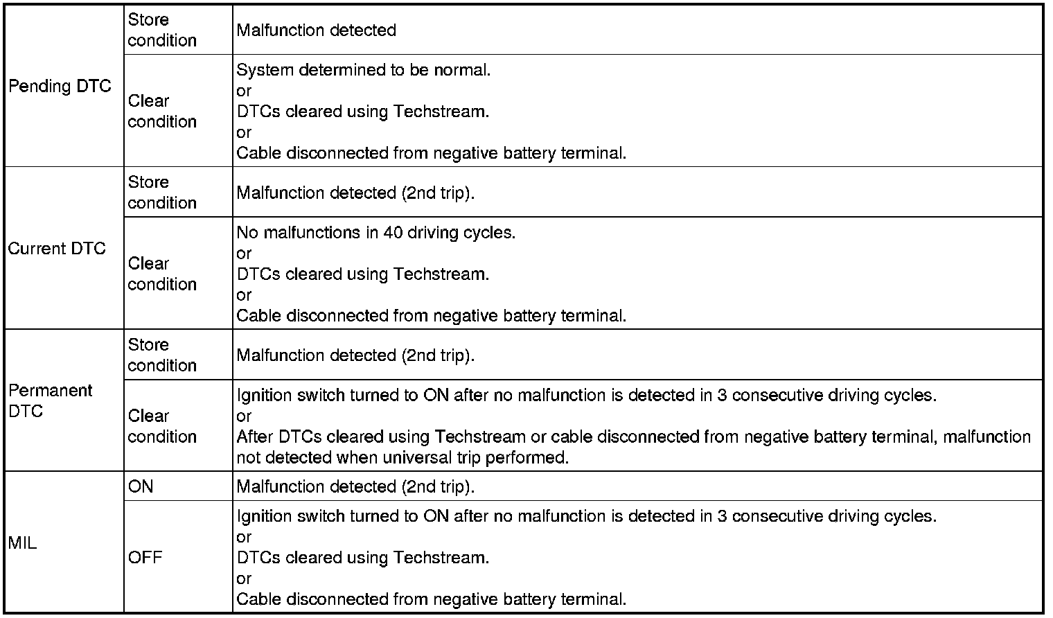 * After clearing current DTCs using the Techstream (or by disconnecting the cable from the negative battery terminal), permanent DTCs are cleared when the system is determined to be normal for the relevant DTCs and then the universal trip is performed.