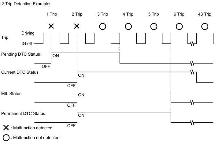 * If a malfunction is detected during the current driving cycle, current and permanent DTCs are stored.