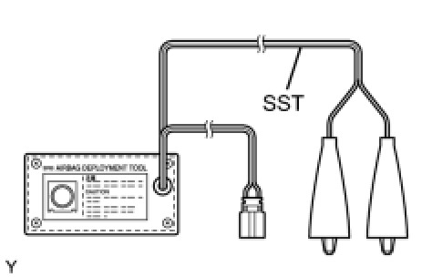 * When deploying the airbag, always use the specified SST (SRS Airbag Deployment Tool). Perform the operation in a place away from electrical noise.