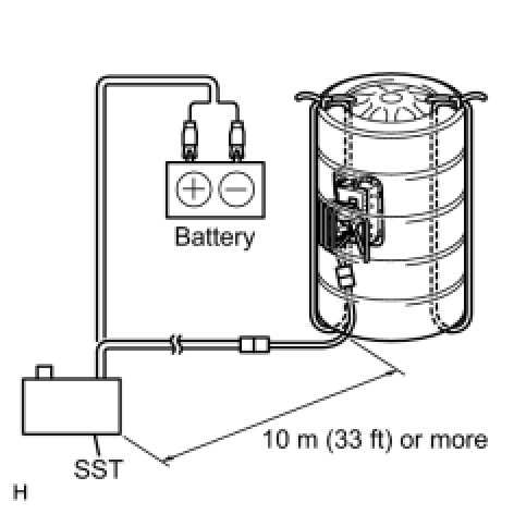 (4) Connect the red clip of SST to the positive battery terminal and the black clip of SST to the negative battery terminal.