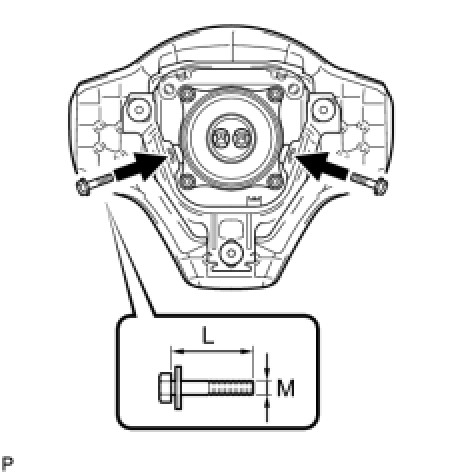 (1) Turn the steering wheel 90 degrees in both directions and remove the 2 screws.