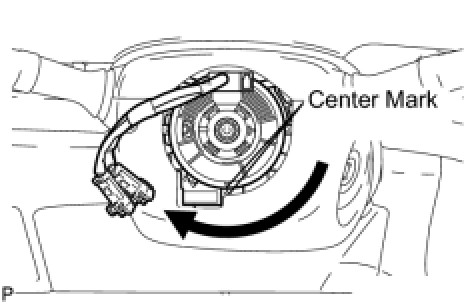 (2) Turn the spiral cable 2.5 times clockwise from its locked position and align the center marks.