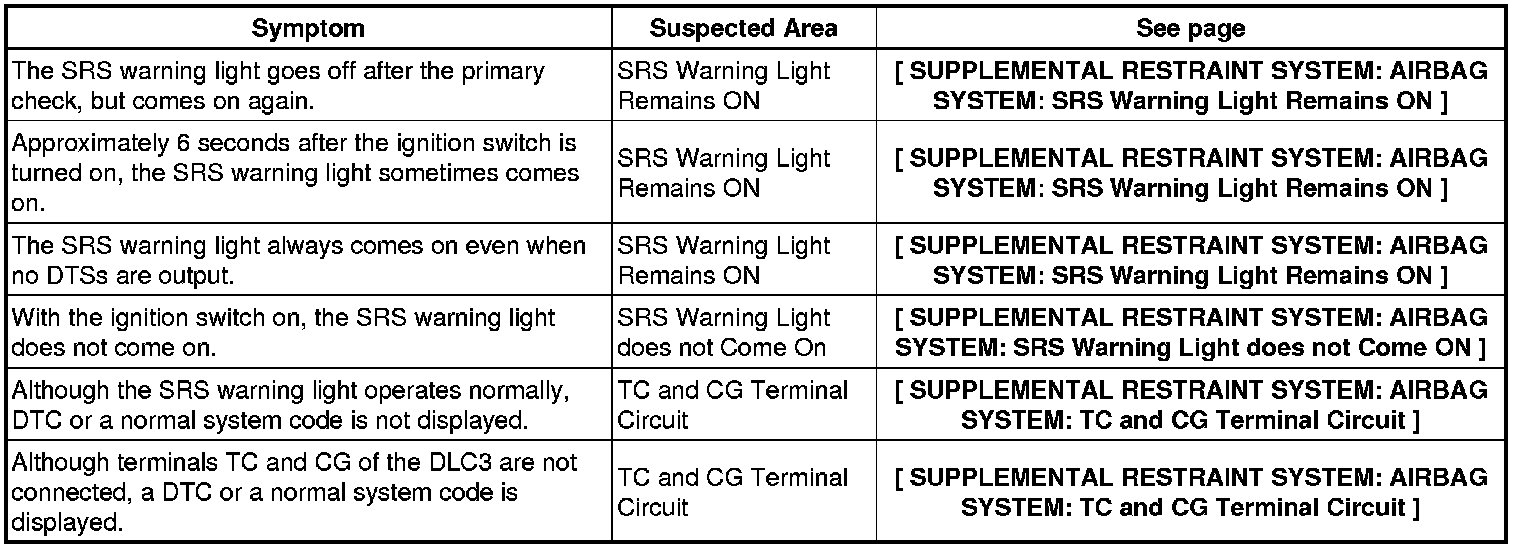 SUPPLEMENTAL RESTRAINT SYSTEM: AIRBAG SYSTEM: PROBLEM SYMPTOMS TABLE