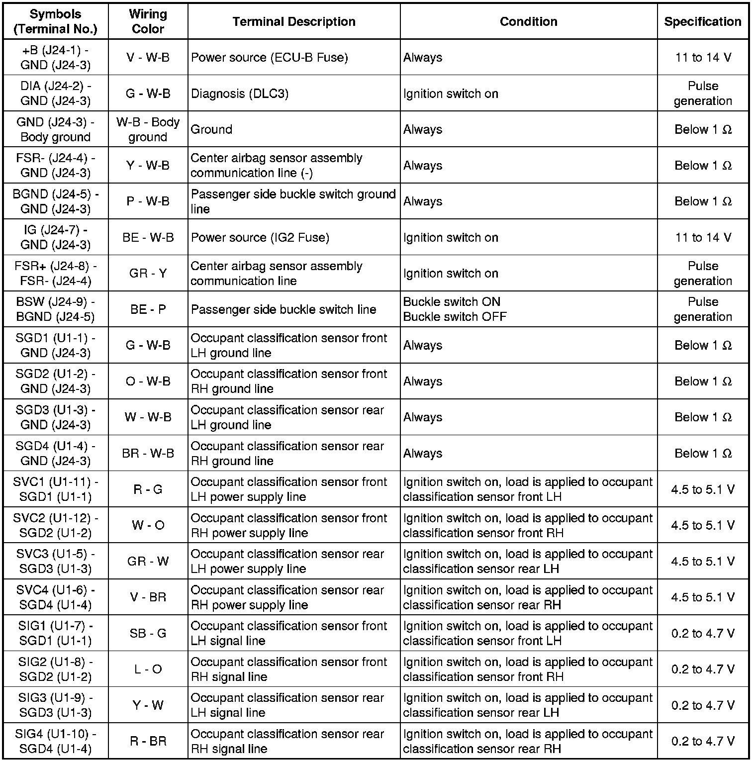 SUPPLEMENTAL RESTRAINT SYSTEM: OCCUPANT CLASSIFICATION SYSTEM: TERMINALS OF ECU