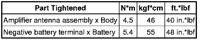 SERVICE SPECIFICATIONS: AUDIO / VISUAL: TORQUE SPECIFICATIONSRADIO RECEIVER (for Sedan)::