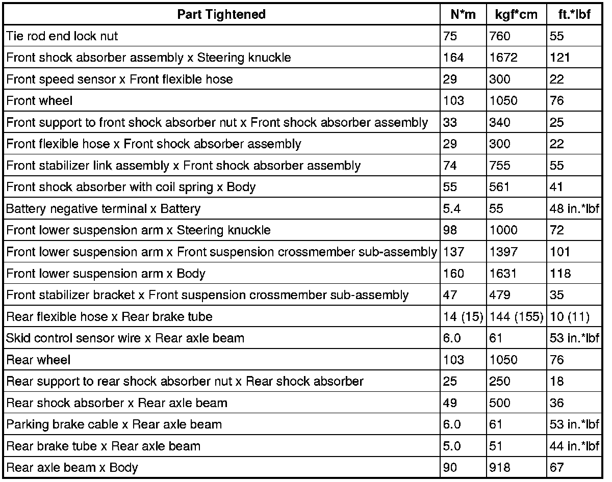 : TORQUE SPECIFICATIONS