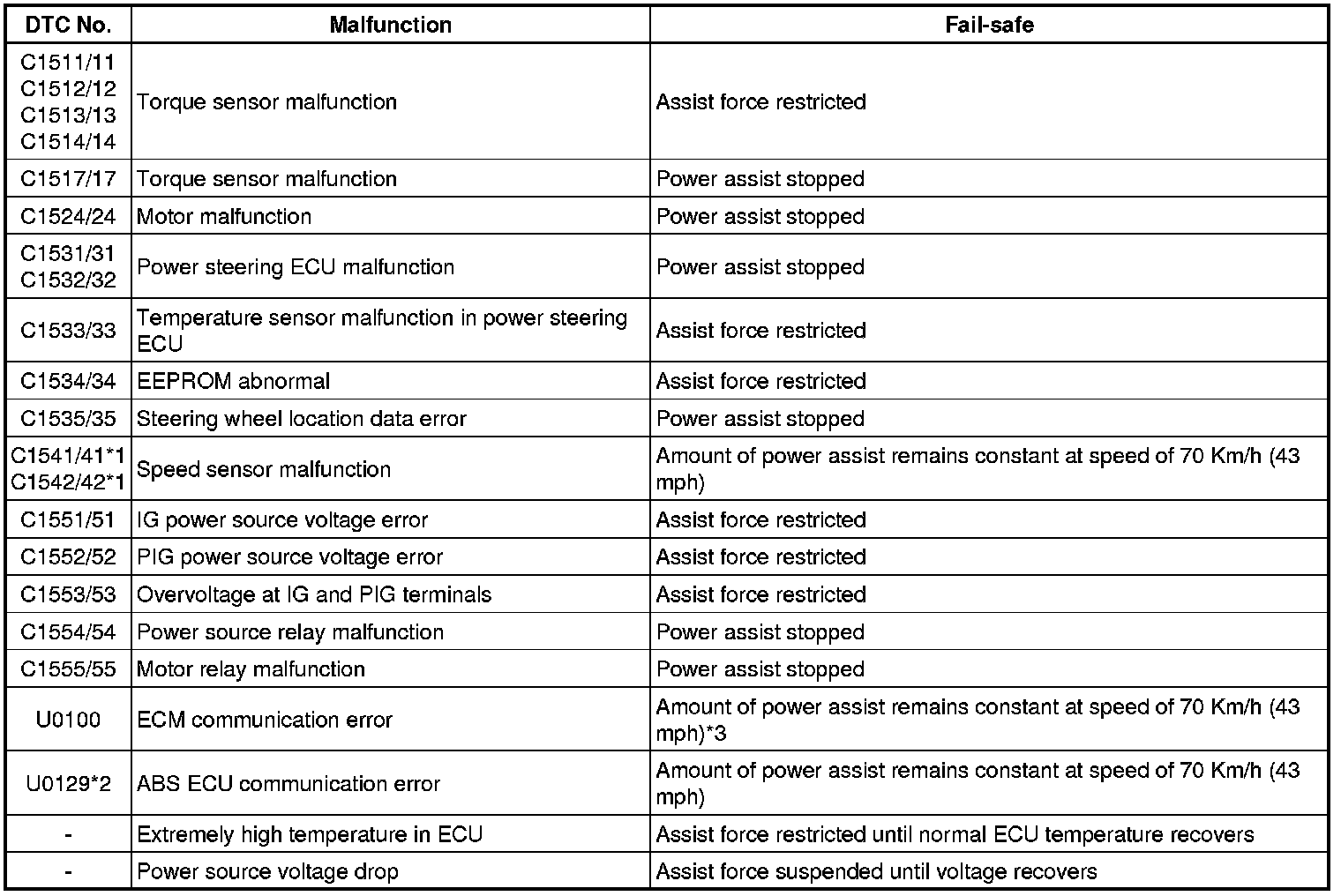 POWER STEERING: POWER STEERING SYSTEM: FAIL-SAFE CHART