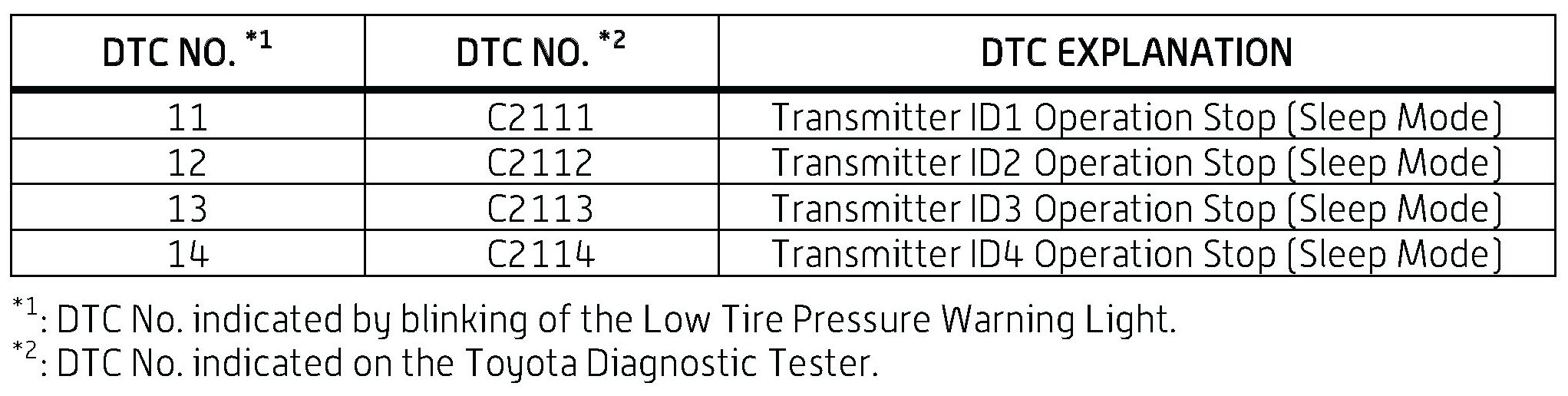- The DTCs will automatically clear when tire pressure warning valves/sensors are activated.