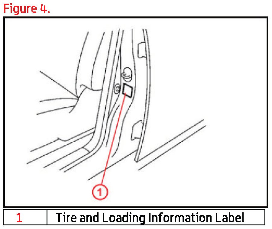 5. Adjust all tires to the standard tire inflation pressure, as indicated on the Tire and Loading Information label located inside the driver's door jamb.