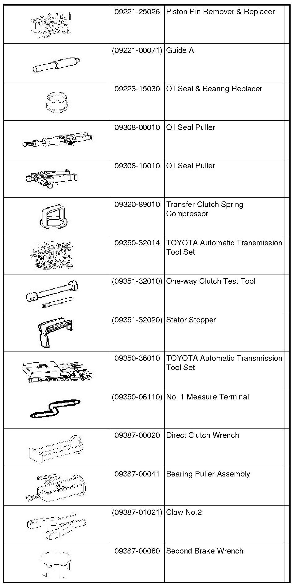 PREPARATION: U340E AUTOMATIC TRANSAXLE: SST