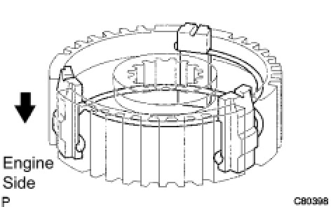 (a) Coat synchronizer ring No. 3 with gear oil and install it onto the 5th gear.