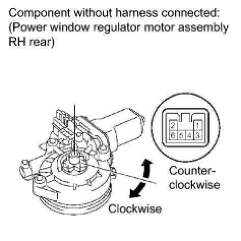 (1) If the result is not as specified, replace the power window regulator motor.