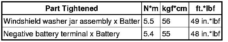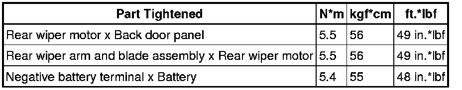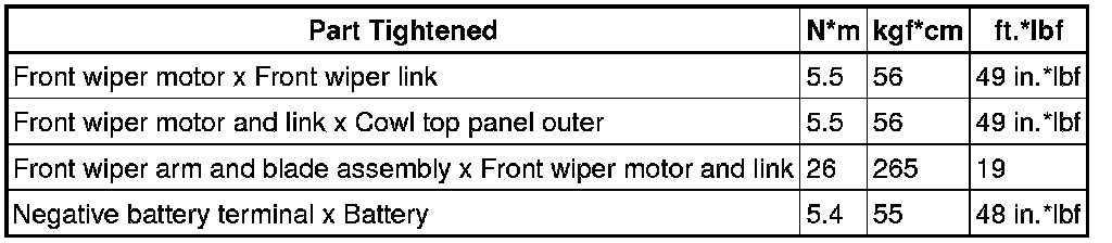 SERVICE SPECIFICATIONS: WIPER AND WASHER: TORQUE SPECIFICATIONSFRONT WIPER MOTOR (for Sedan)::