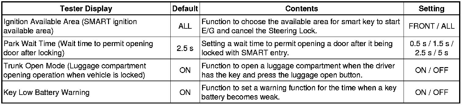 DOOR LOCK: SMART KEY SYSTEM: CUSTOMIZE PARAMETERS
