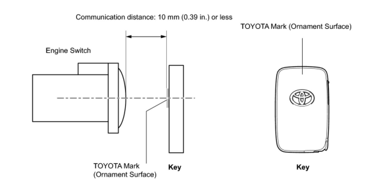The vehicle with the smart key system does not have a key slot. Therefore, hold the key close to the engine switch to register the key, as shown in the illustration below.