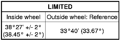 If the right and left inside wheel angles differ from the specified range, check and adjust the right and left rack end lengths.
