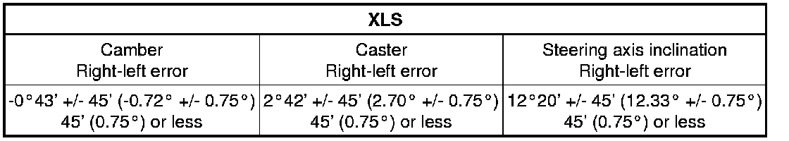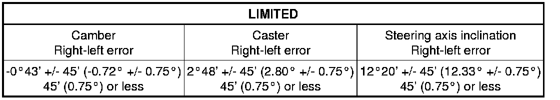 The body and suspension may be damaged if the camber is not correctly adjusted according to the above table.