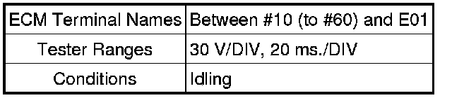 If the waveform is not similar to that shown in the illustration, check the waveform again after idling for 10 minutes or more.
