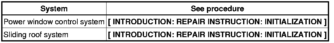 When disconnecting the battery negative (-) terminal, initialize the following systems after the terminal is reconnected: