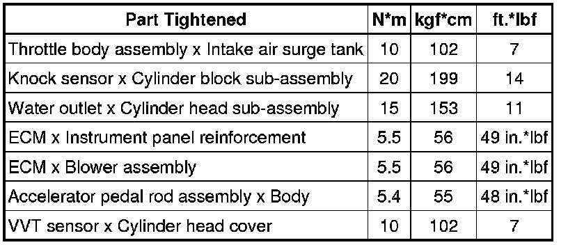 SERVICE SPECIFICATIONS: 2GR-FE ENGINE CONTROL SYSTEM: TORQUE SPECIFICATIONS