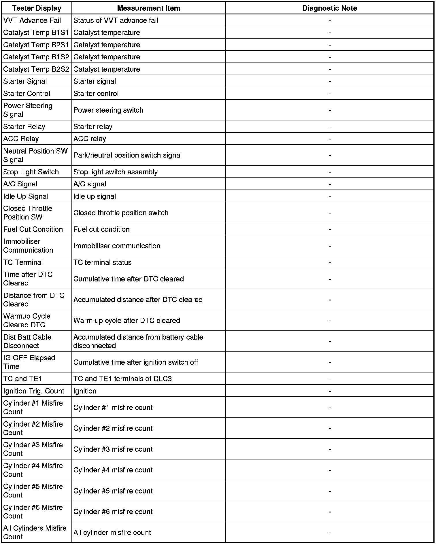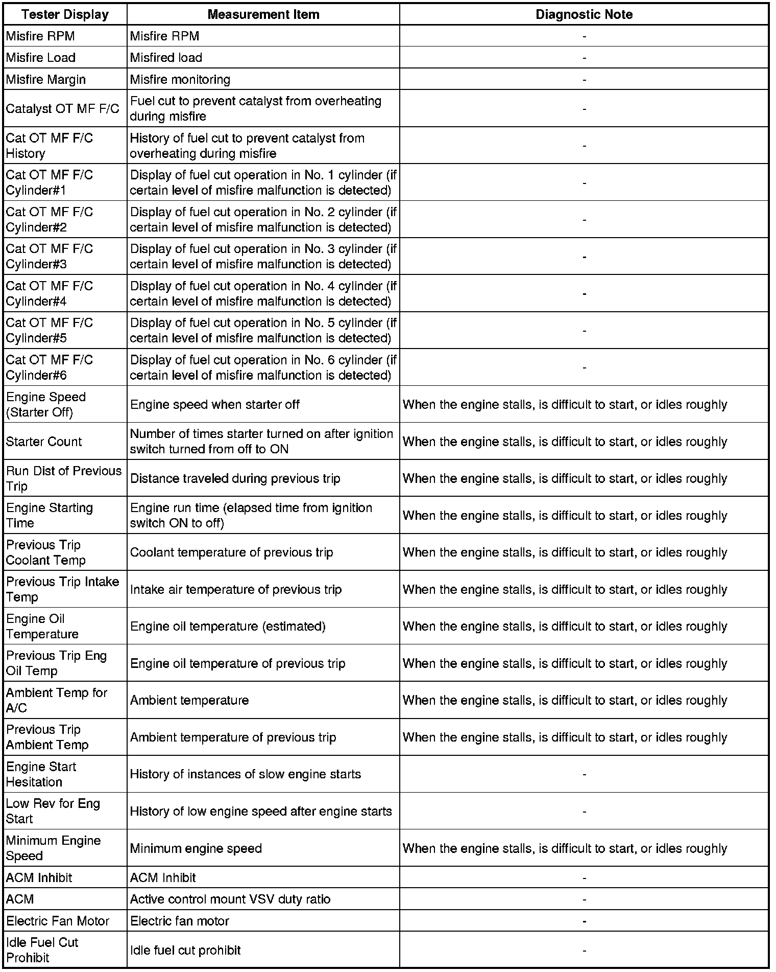 2GR-FE ENGINE CONTROL SYSTEM: SFI SYSTEM: FREEZE FRAME DATA