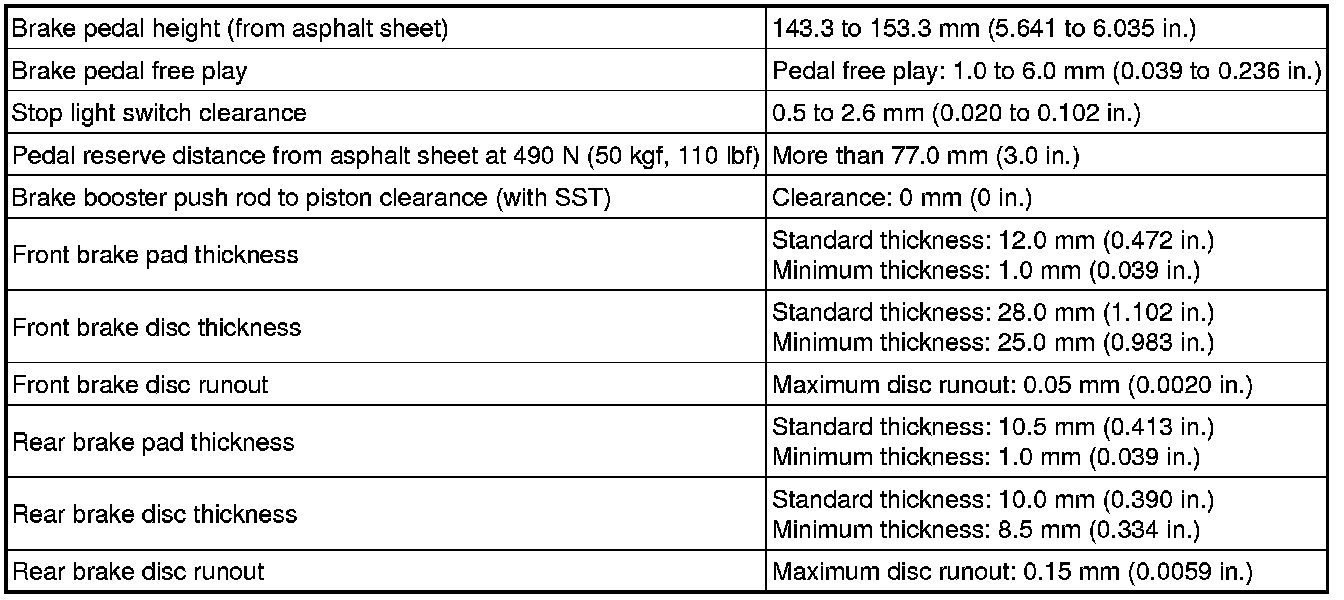 SERVICE SPECIFICATIONS: BRAKE: SERVICE DATA