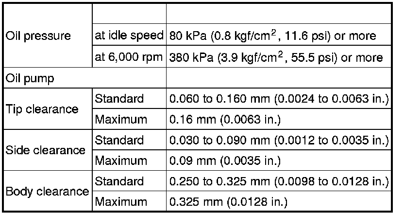 SERVICE SPECIFICATIONS: 2GR-FE LUBRICATION: SERVICE DATA