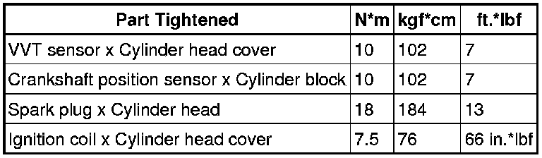 SERVICE SPECIFICATIONS: 2GR-FE IGNITION: TORQUE SPECIFICATIONS