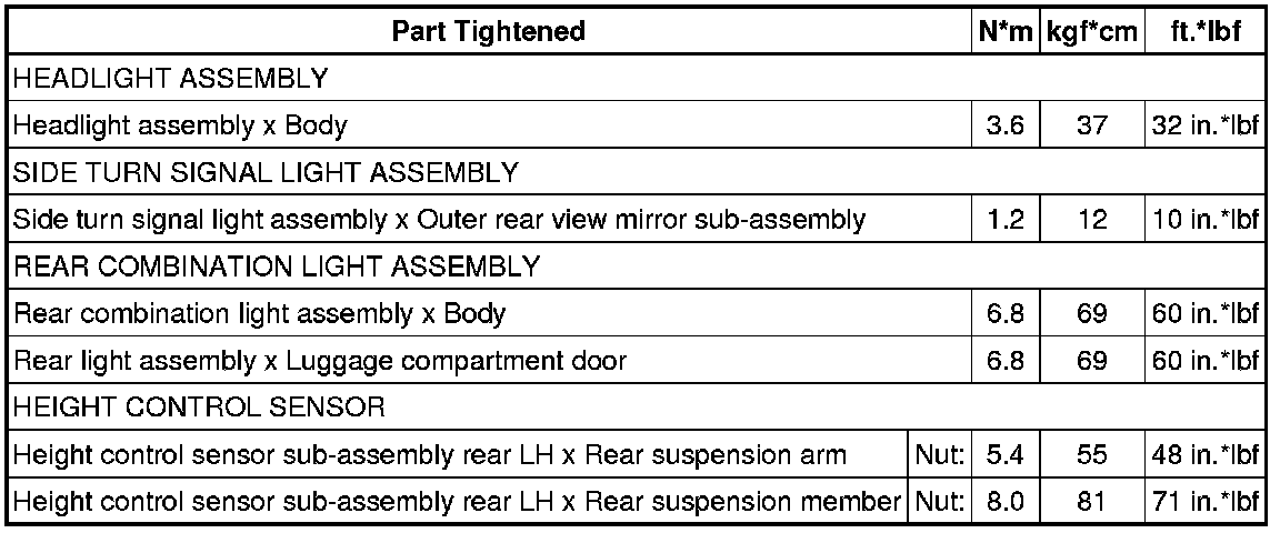 SERVICE SPECIFICATIONS: LIGHTING: TORQUE SPECIFICATIONS