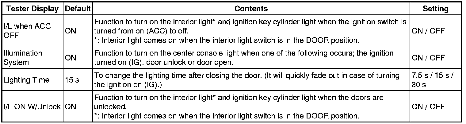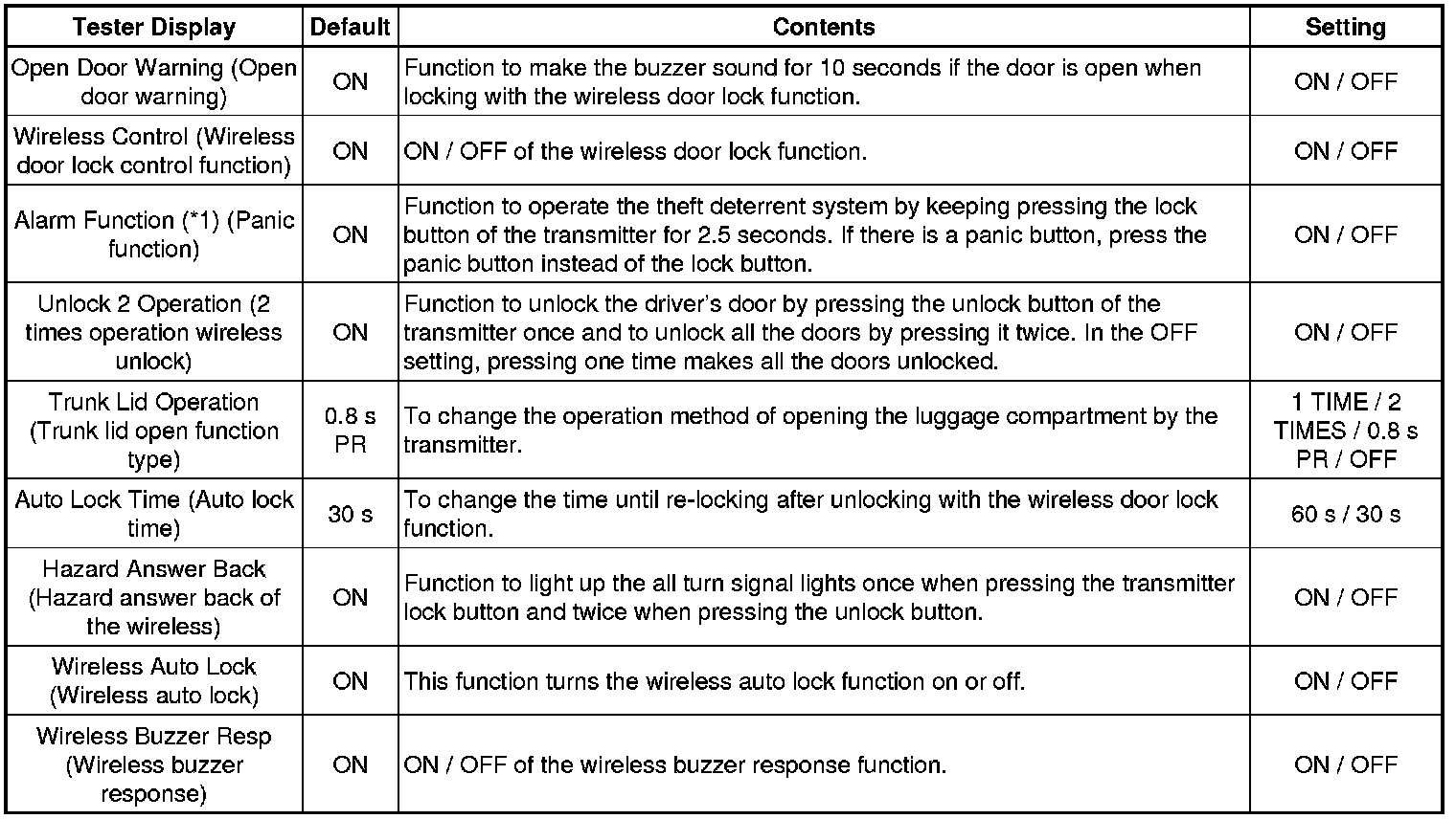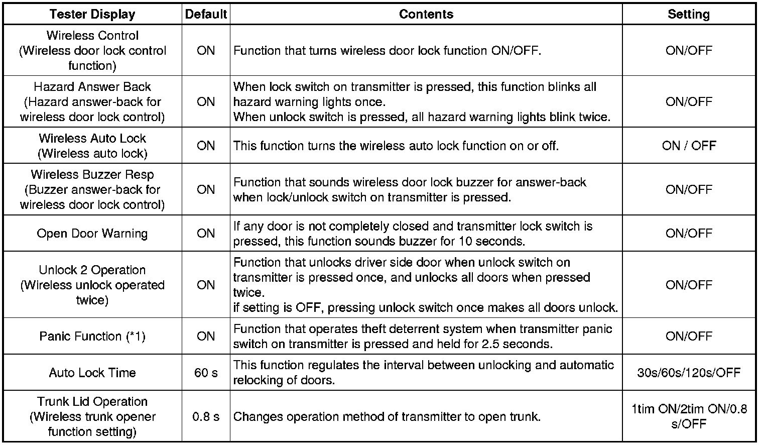 (*1): This function cannot be turned on or off if the security system is turned off.