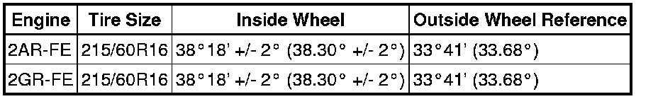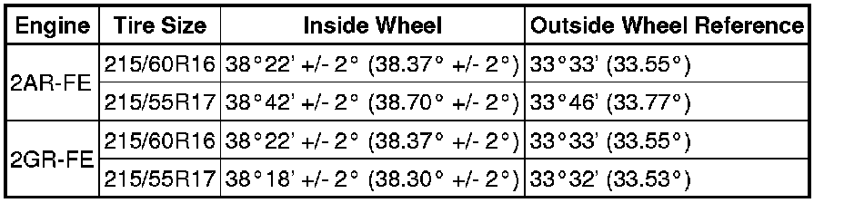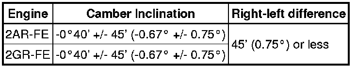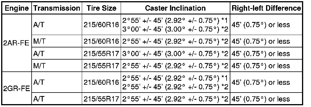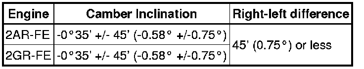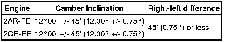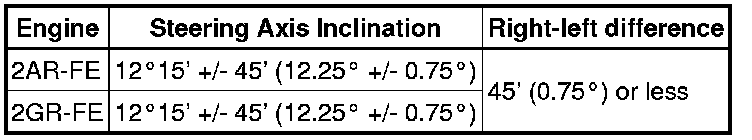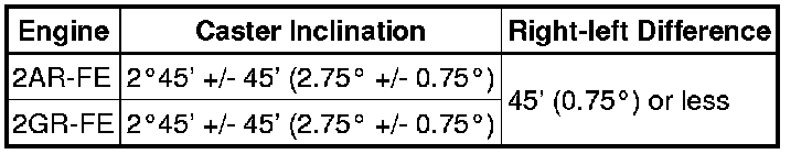 * The maximum tolerance of the right and left difference for the camber and caster is 45' (0.75°) or less.