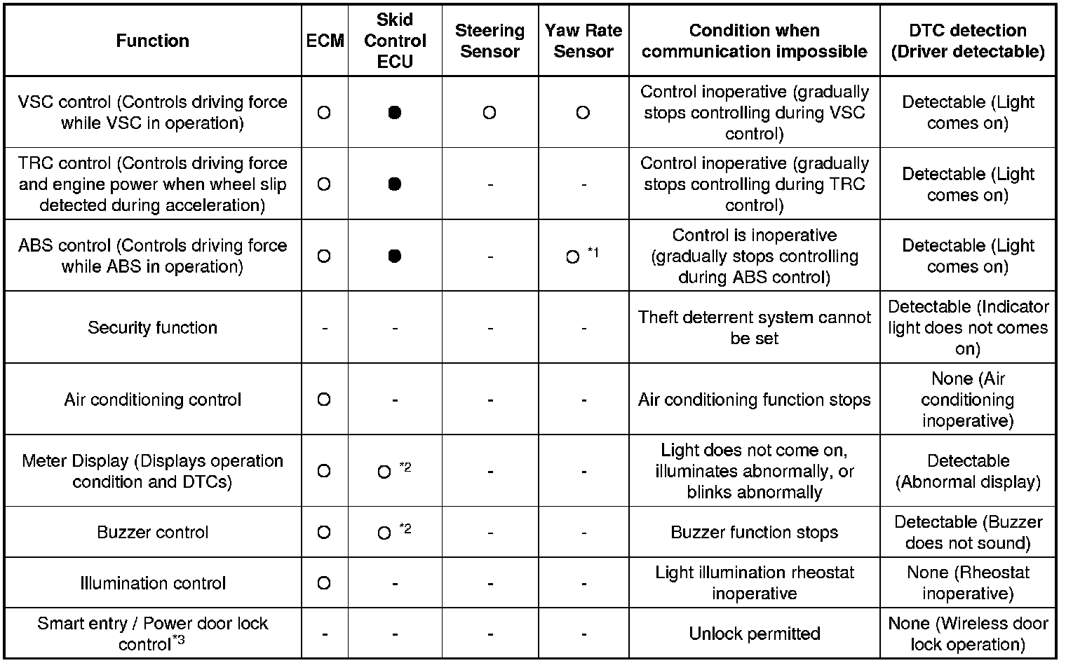 (b) The following chart shows the relationships between components and system functions and effects of communication failure on these functions. (For further details, see the pages for each system.)