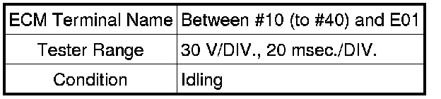 If the waveform is not similar to that shown in the illustration, check the waveform again after idling for 10 minutes or more.