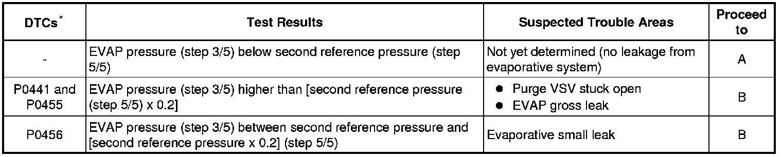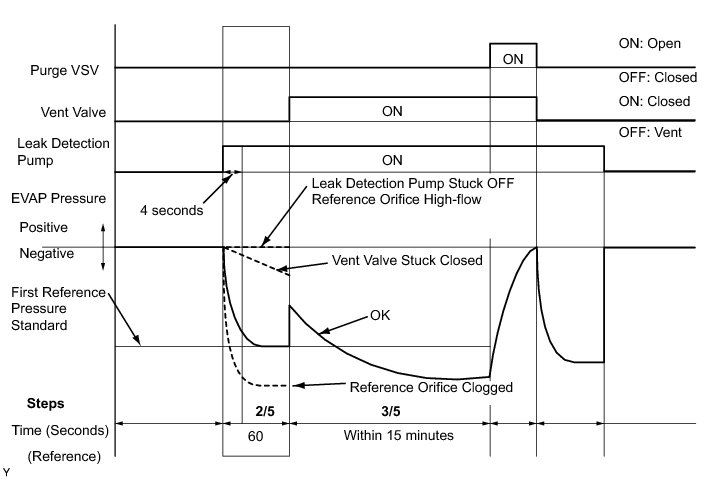 (b) Compare the EVAP pressure in step 3/5 and the second reference pressure (step 5/5).