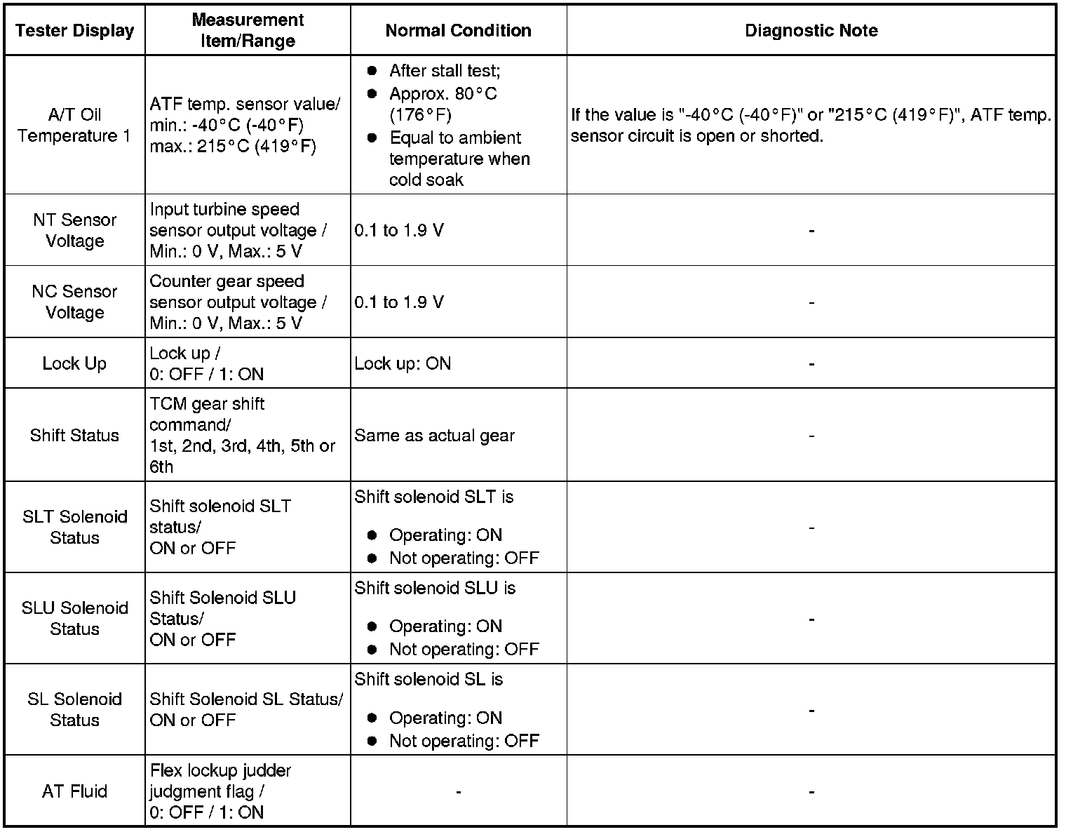 U760E AUTOMATIC TRANSAXLE: AUTOMATIC TRANSAXLE SYSTEM: DATA LIST / ACTIVE TEST