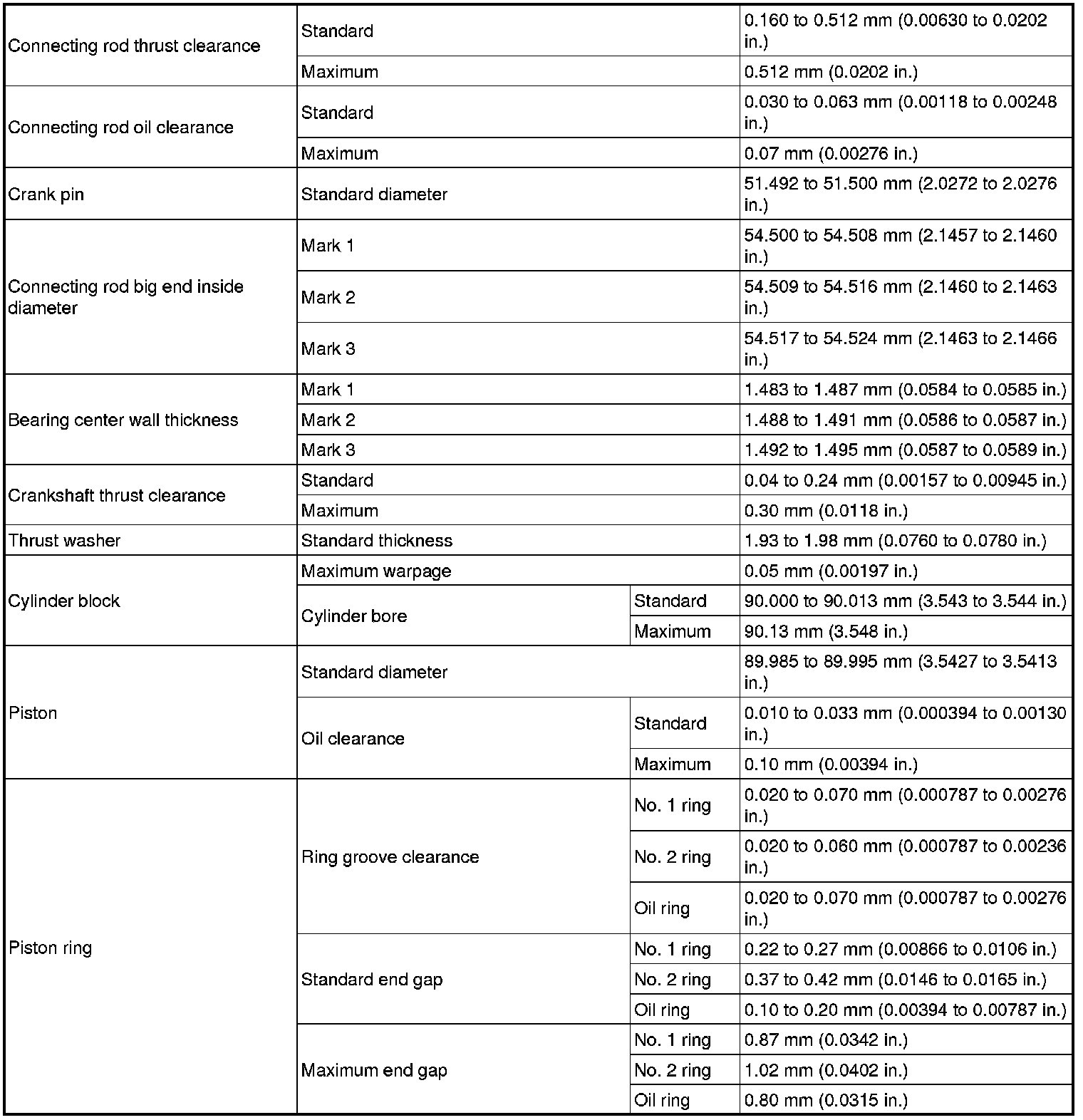 SERVICE SPECIFICATIONS: 2AR-FE ENGINE MECHANICAL: SERVICE DATA