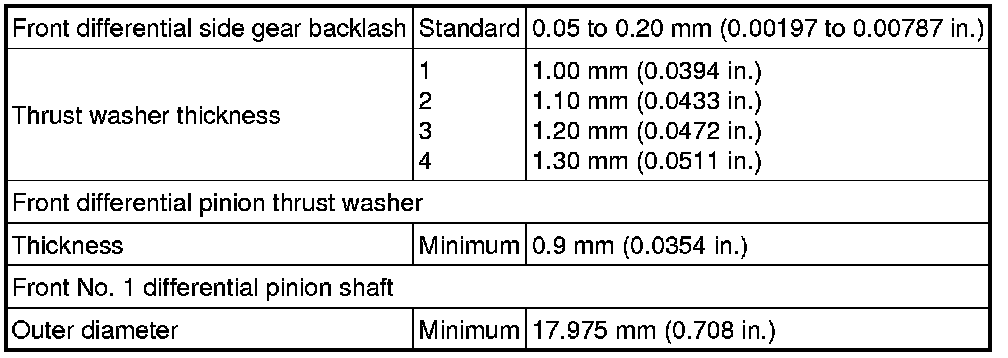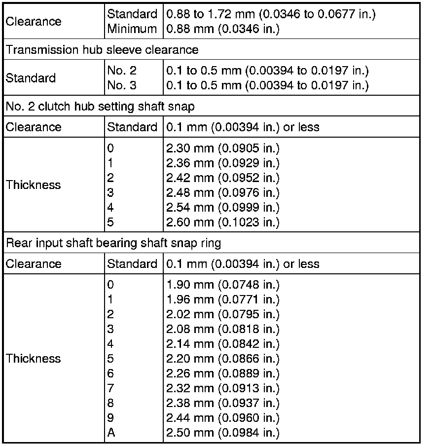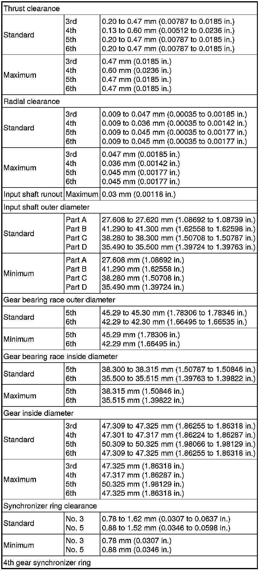 SERVICE SPECIFICATIONS: EB62 MANUAL TRANSAXLE: SERVICE DATA