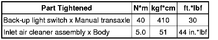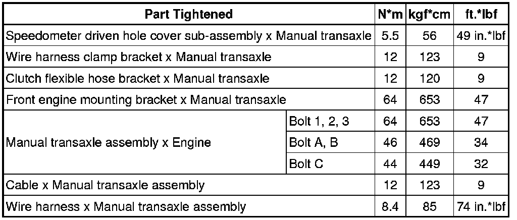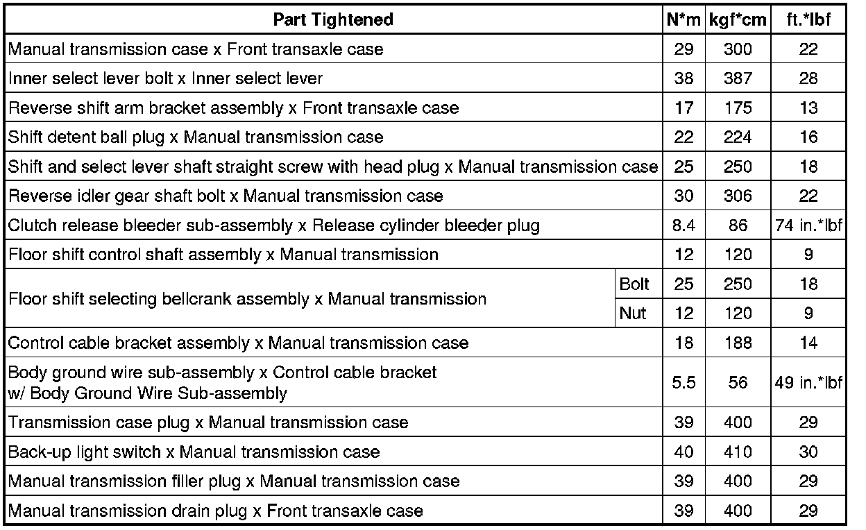 SERVICE SPECIFICATIONS: EB62 MANUAL TRANSAXLE: TORQUE SPECIFICATIONS