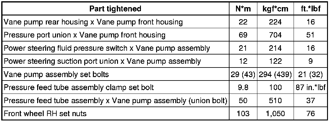 : TORQUE SPECIFICATIONS