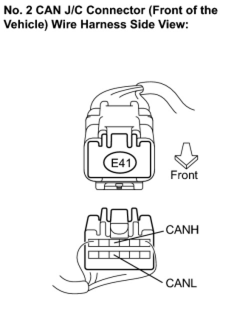 (b) Disconnect the CAN main bus wire connector (E41) from the No. 2 CAN J/C (front of the vehicle).