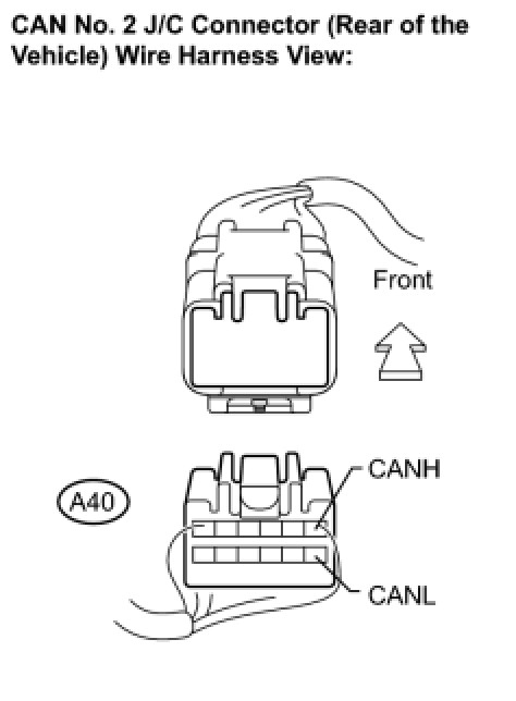 (b) Disconnect the CAN main bus wire connector (A40) from the No. 2 CAN J/C (rear of the vehicle).