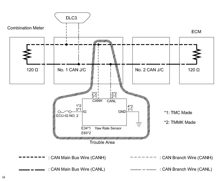 1. CHECK OPEN IN CAN BUS WIRE (YAW RATE SENSOR BRANCH WIRE)