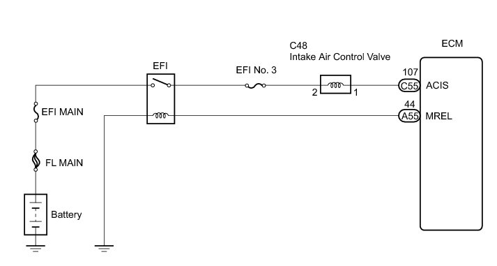 (c) Check the wire harness between the intake air control valve connector and EFI relay.