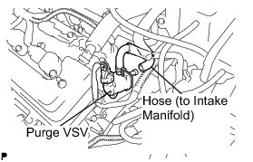 (a) Disconnect the hose (connected to the intake manifold) from the purge VSV.