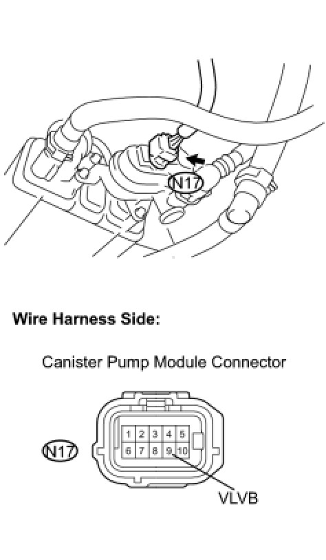 (d) Measure the voltage between the VLVB terminal of the canister pump module connector and body ground.