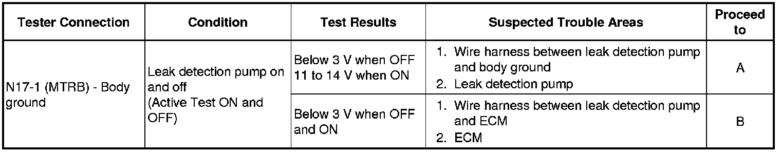 (e) Measure the voltage between MTRB terminal 1 of the canister pump module connector and body ground when the leak detection pump is turned ON and OFF using the Techstream.